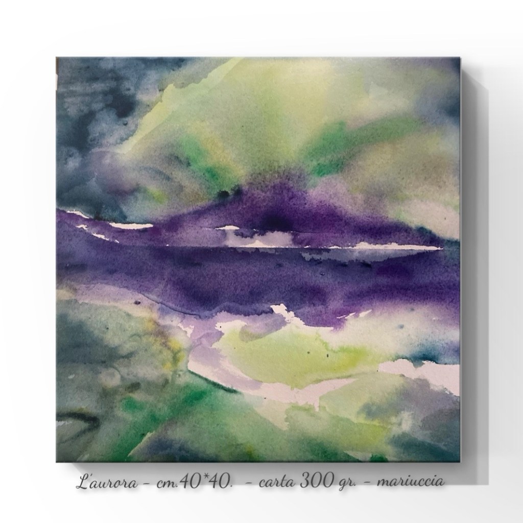 L’aurora di un tempo boreale trasforma in verde il blu del mare e del cielo e, colora di viola il nero della terra.
